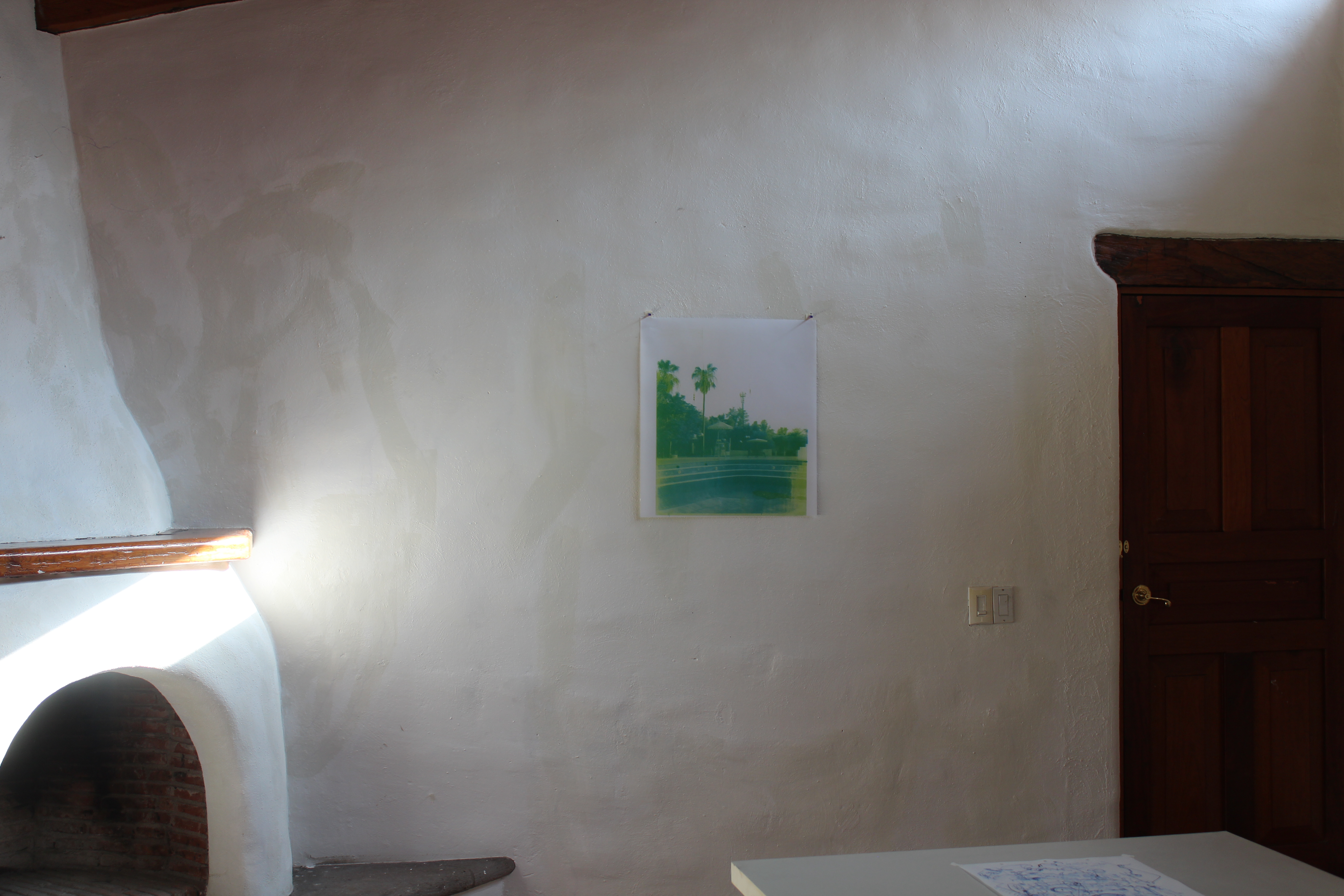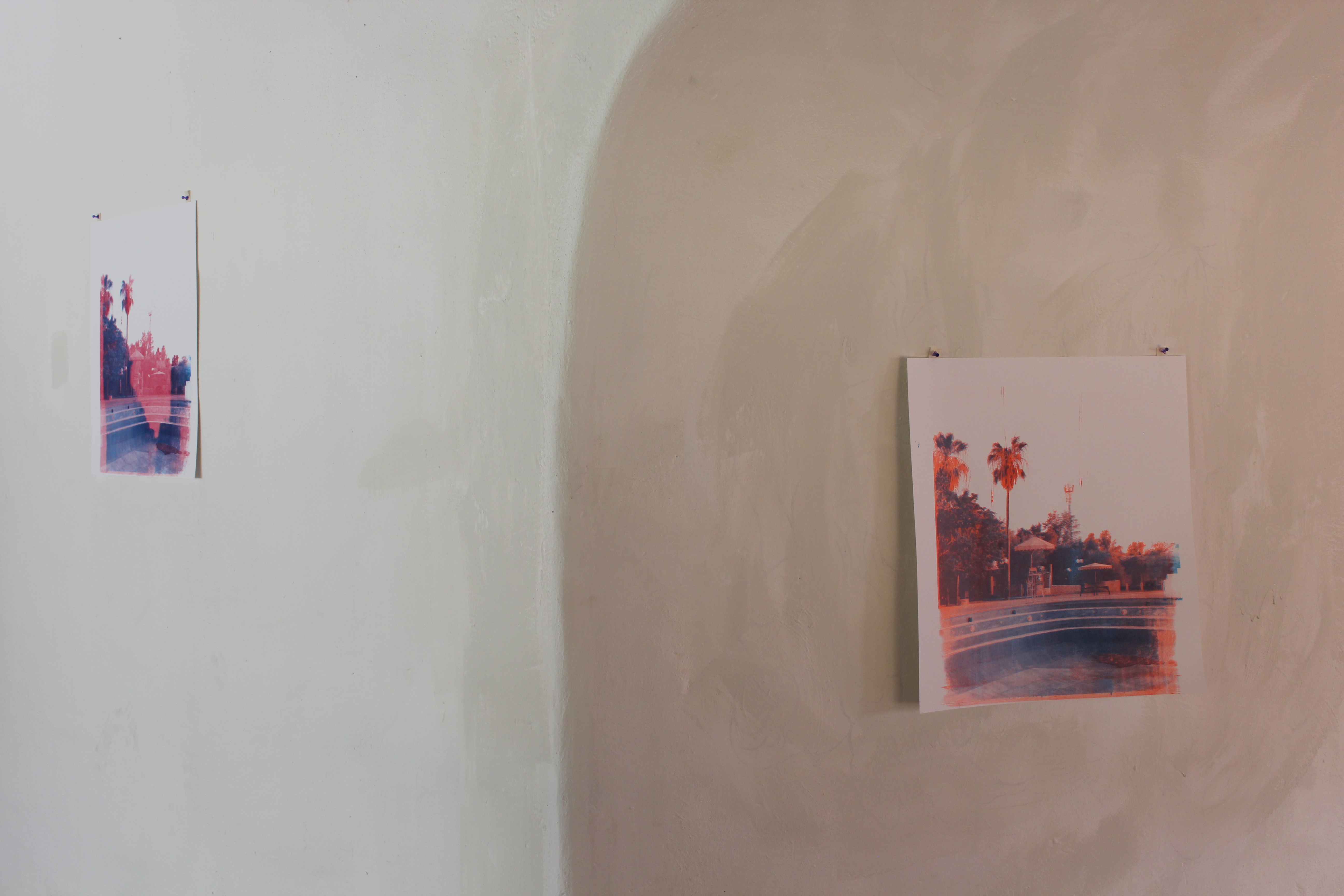 After visiting the site of Adhari spring in 2022, to find it being a drained swimming pool inaccessible to the public, I was struck by the jarring distance between the mythology and the reality of the site. I began experimenting, in Mexico City, with the serigraphy process to render the images of the site (taken in 2022), as fractured memories.